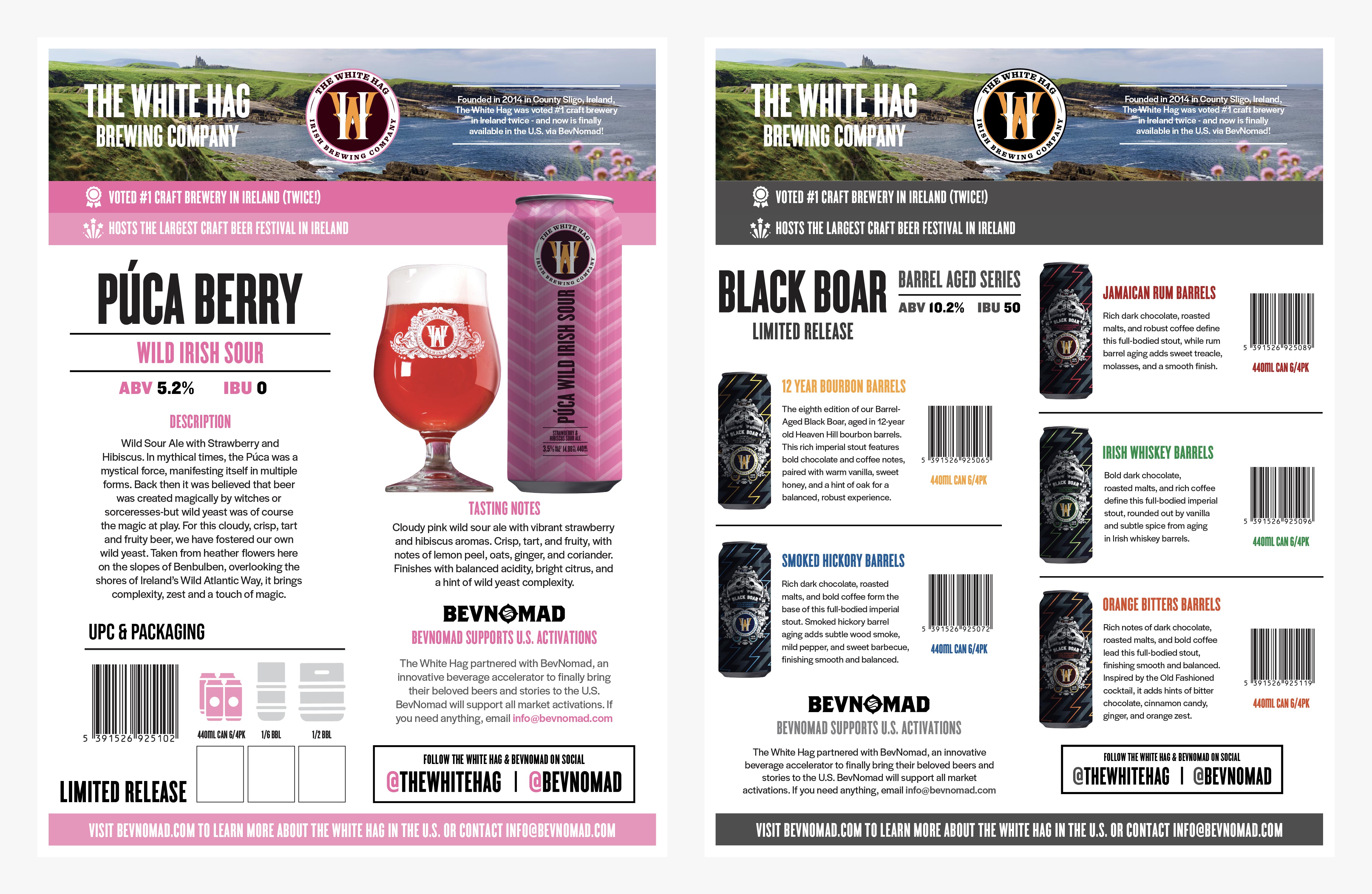 For The White Hag, the goal was to maintain their distinct Irish identity while introducing the brand to U.S. consumers under the BevNomad umbrella.