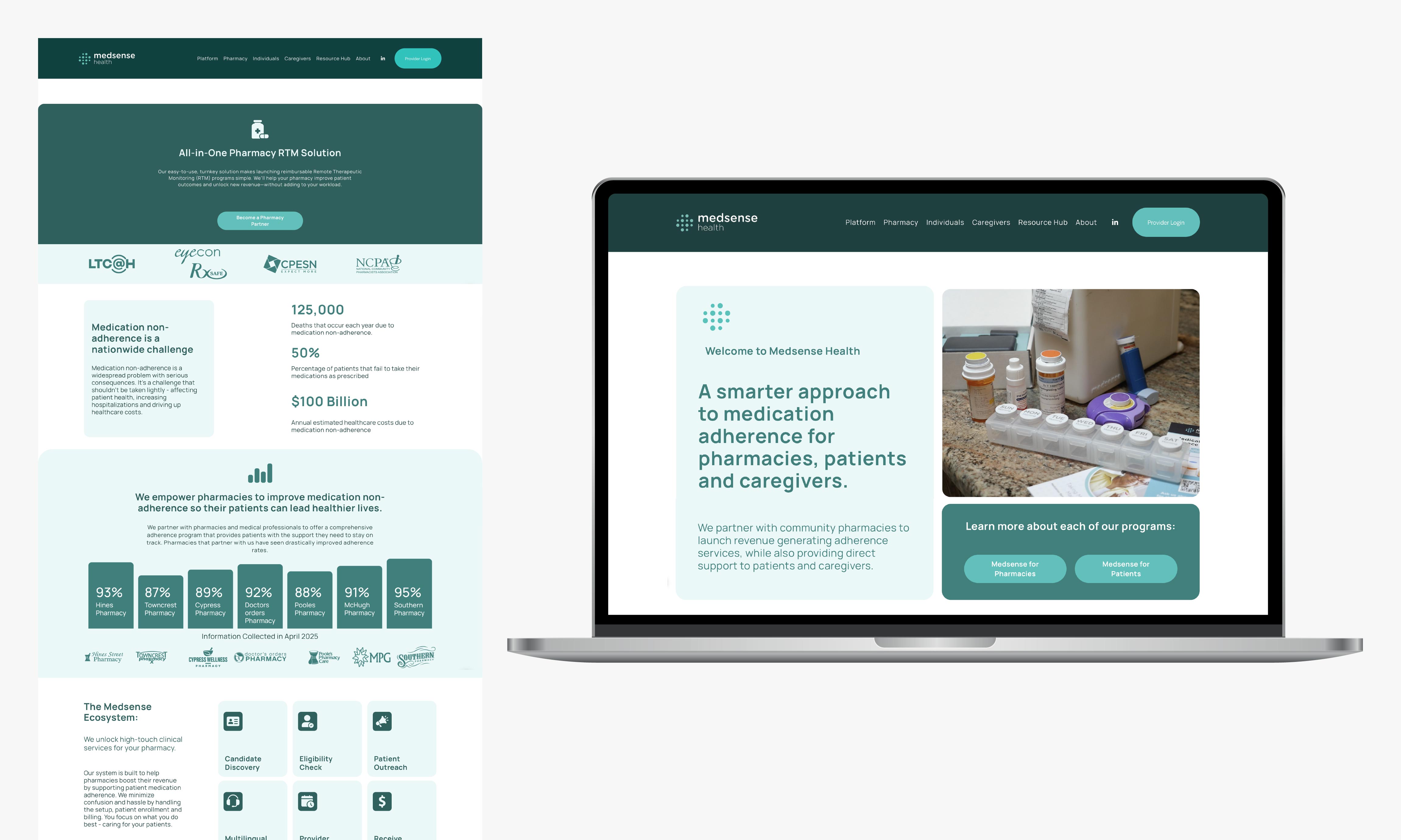 I worked on rebranding and reworking the Medsense website to create a more consistent visual system across the site. This included updating layouts, typography, and overall structure to better align with the brand.